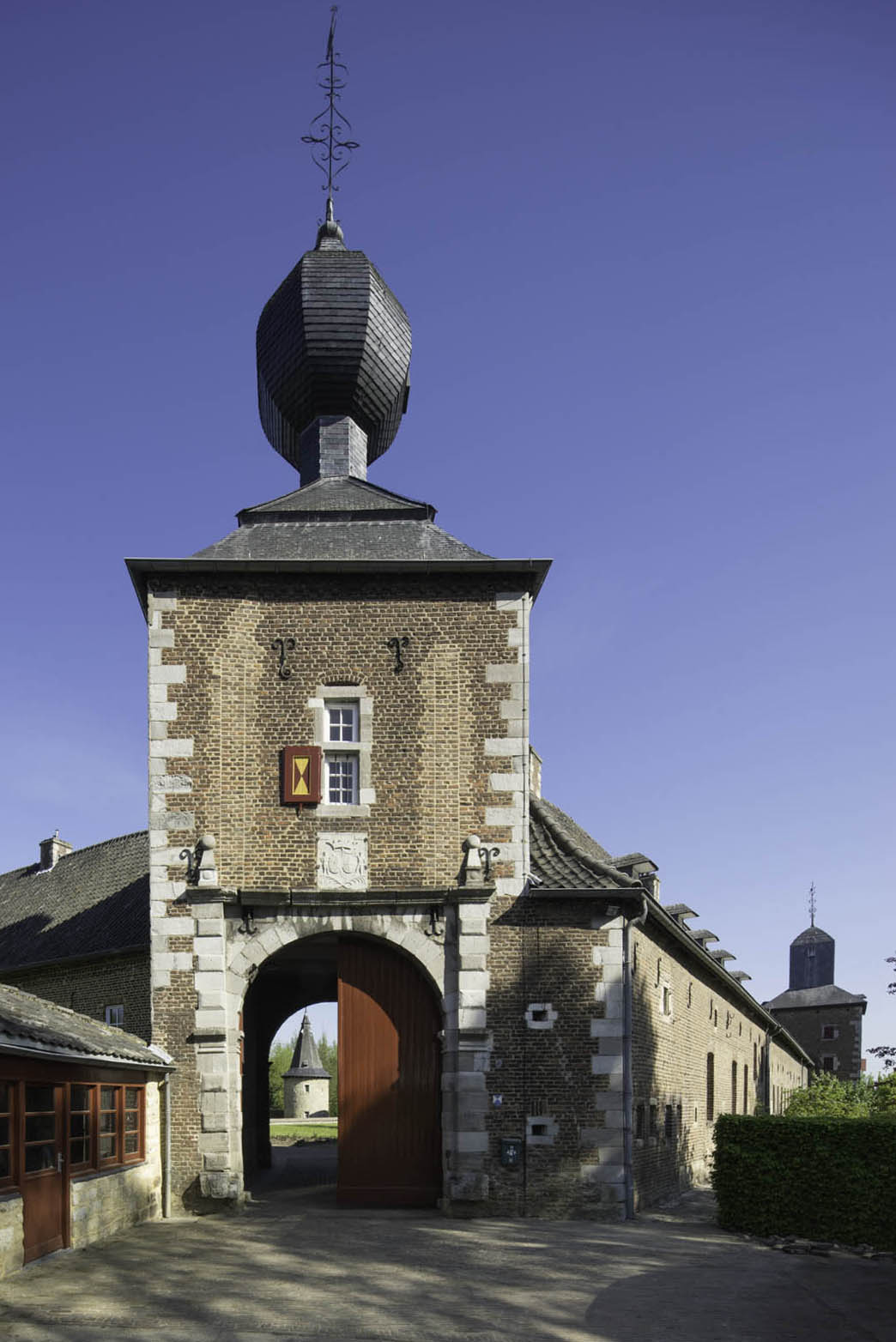 De huidige kasteelhoeve inclusief het poortgebouw zijn gebouwd tussen 1638 en 1645 door baron Caspar Von Schnetter. Van de middeleeuwse voorganger is her en der nog een spoor te vinden.